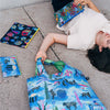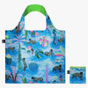The design features SAM WILDE'S surreal underwater oasis, where leopards lounge among neon corals, patterned cacti and fantastical sea plants. Set against a shimmering turquoise backdrop, this recycled bag is an elegant mix of electric pinks, zesty greens and sunny yellows. A vivid pop–art daydream!
