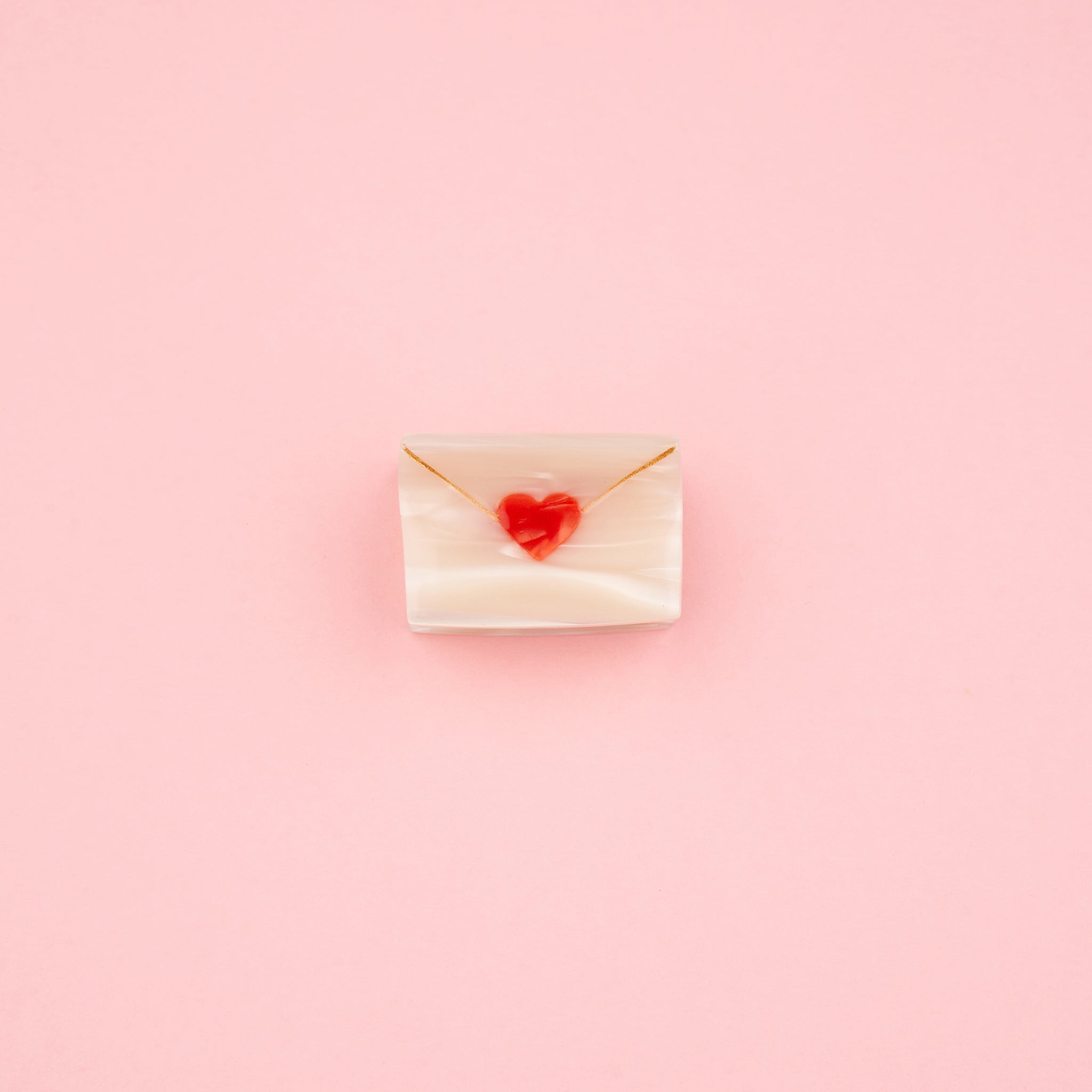 The mail has arrived! And among the letters, this little pearly envelope sealed with a red heart… Who could it be this time? While waiting to read their fiery declarations, we wear this mini hair clip with our prettiest half-up hairstyles.