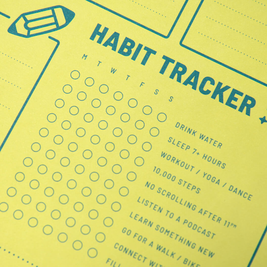 A joyful A3 planner that turns weekly planning into a playful ritual. 52 sheets full of space to list, track, and dream: from daily notes and meal plans to habits and random thoughts. Printed on thick paper with a painted edge, it brings color and structure to your workspace, reminding you that paper still has its magic.