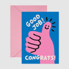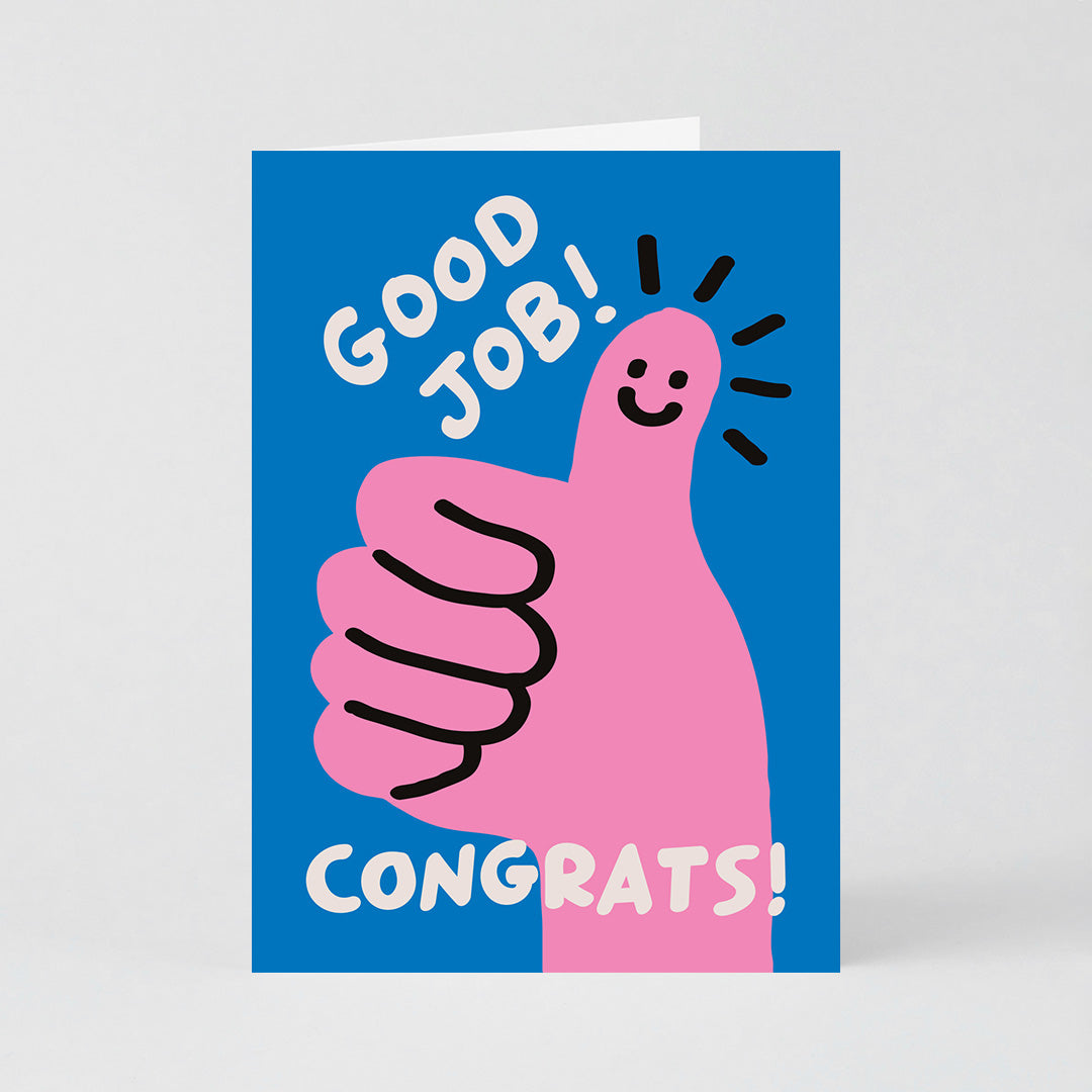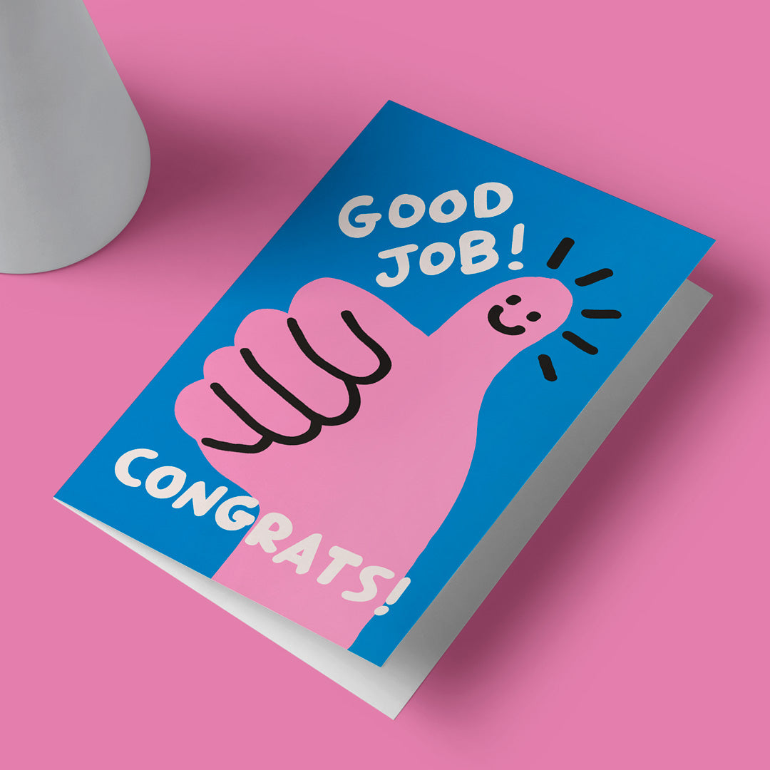 This card is all about giving a big thumbs up for a job well done! With a bright pink hand, a smiling face, and the cheerful message “Good Job! Congrats!”, it’s the perfect way to congratulate someone on their success in the most fun way.