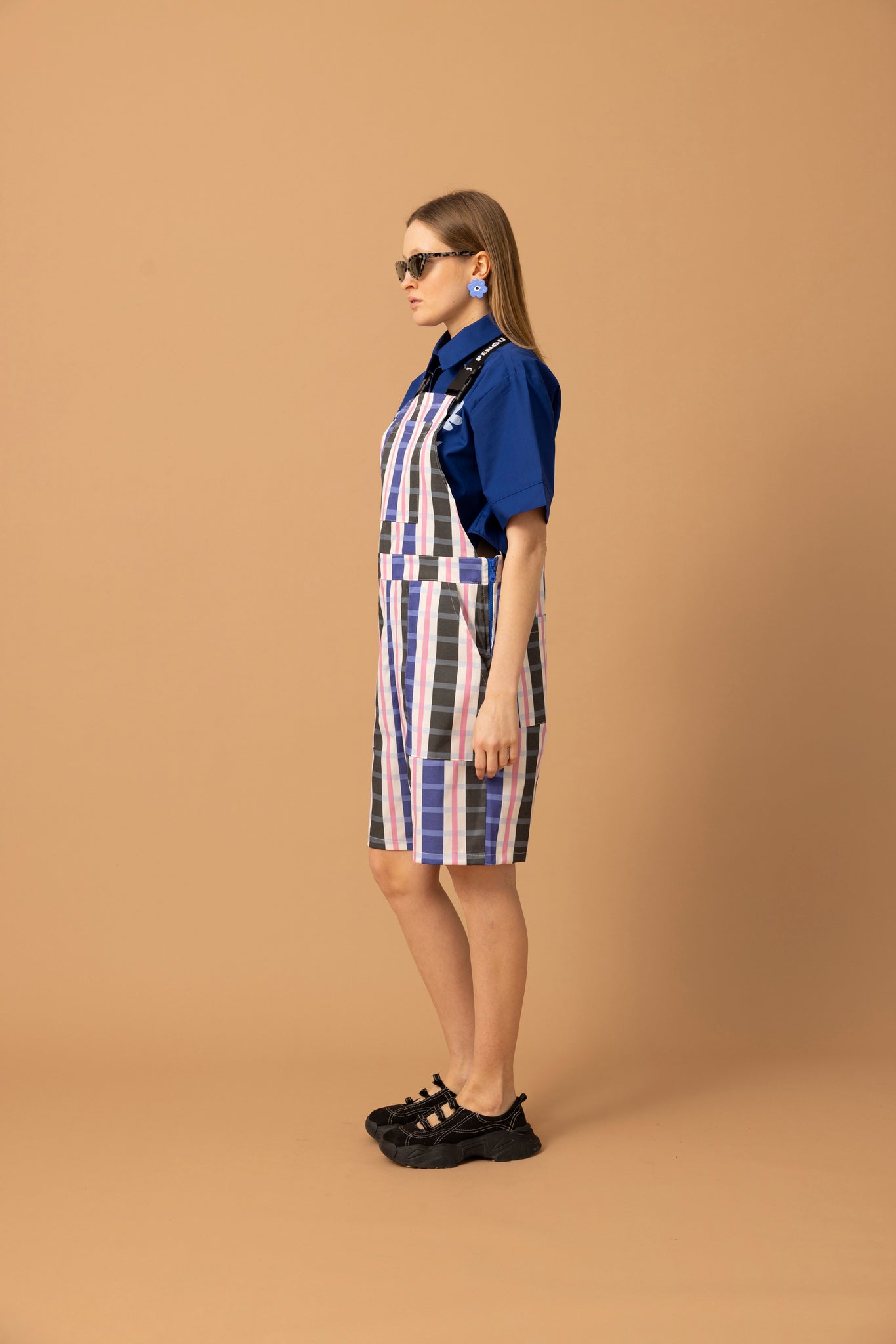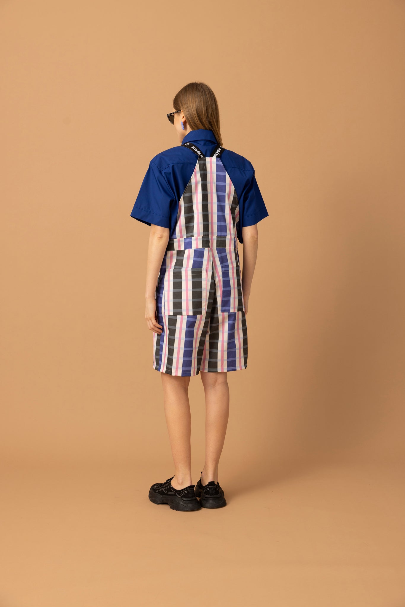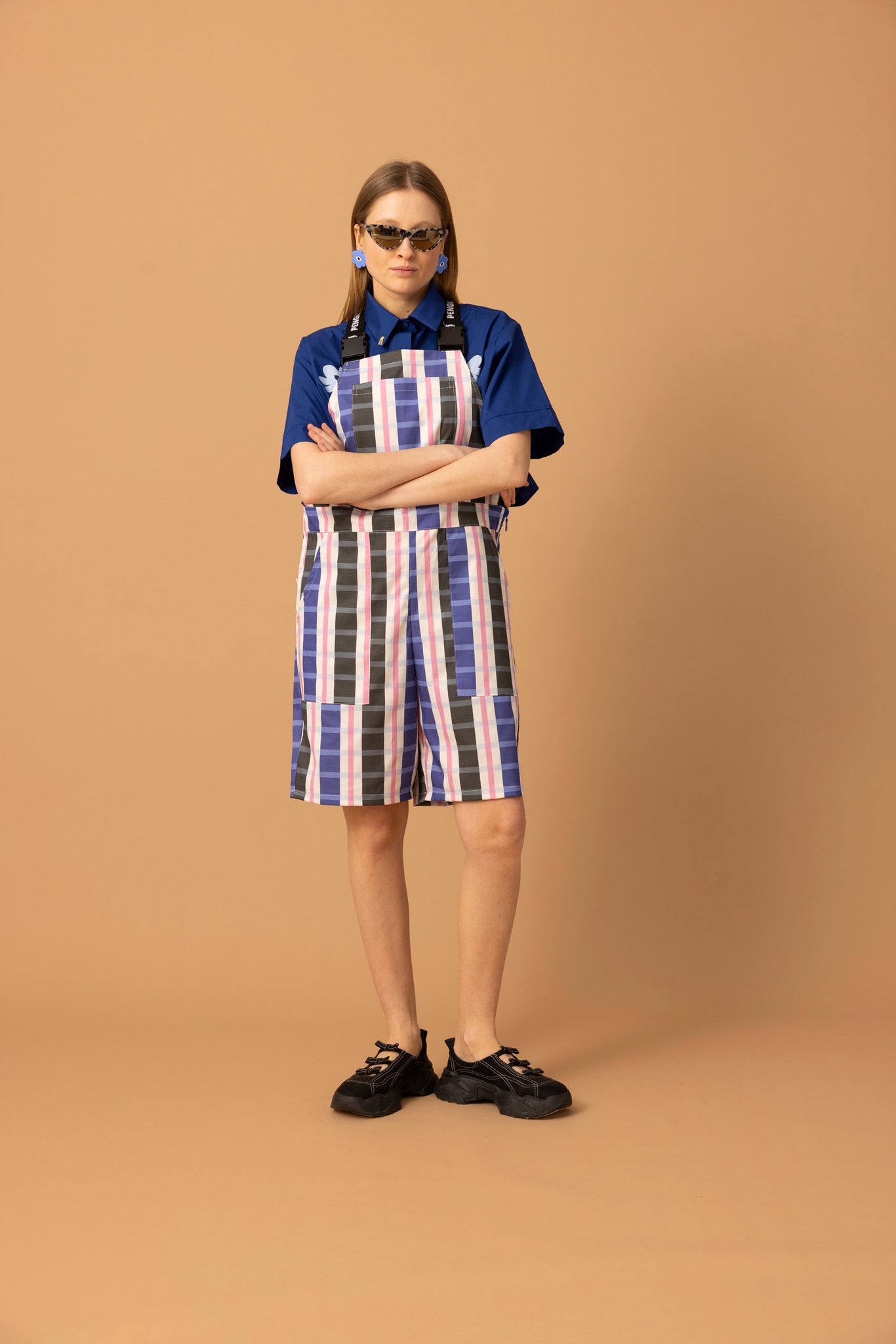 BE COOL OVERALL SHORTS- STRIPY STRIPES BLUE