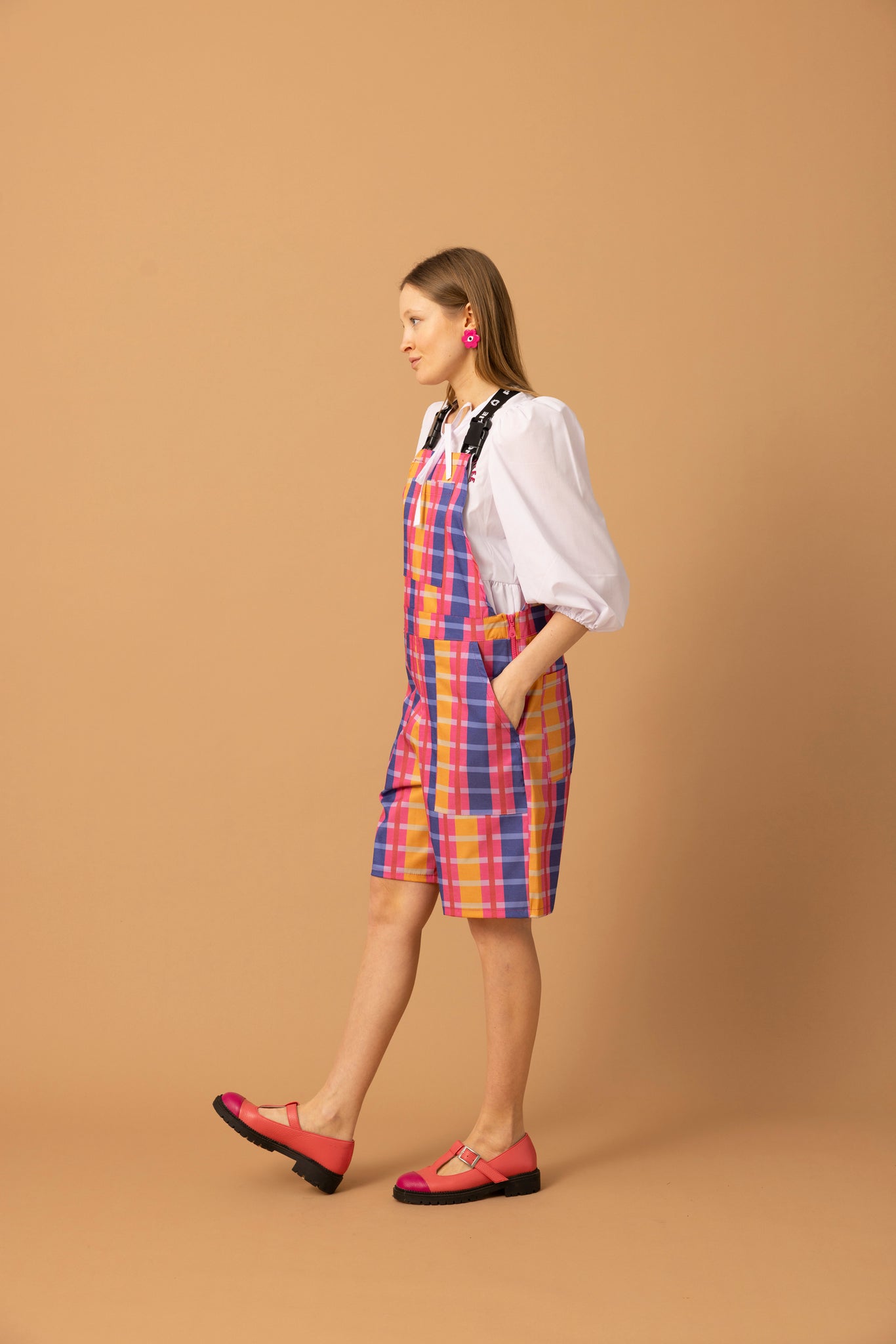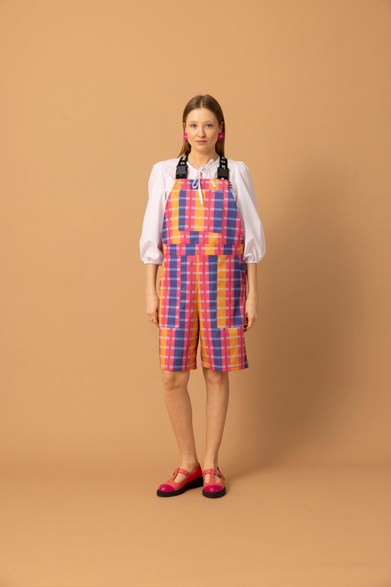 - Loose wide form overalls