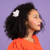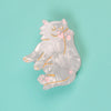 This hair claw is made from white cellulose acetate, and the pink and gold details are hand-painted.